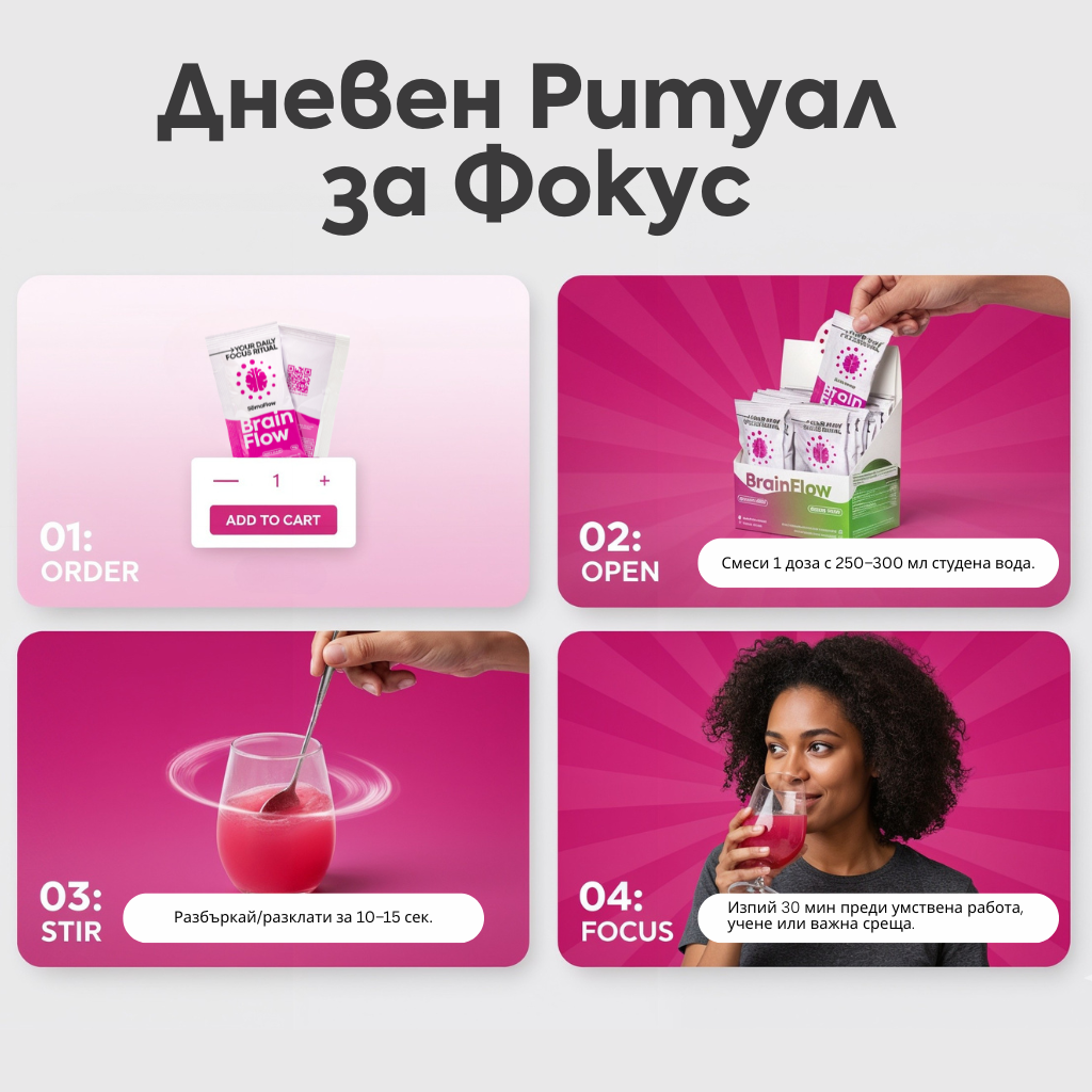 SomaFlow е нашият отговор: по-малко „хакове“, повече ритуали. BrainFlow е първата крачка — създаден да подкрепя яснота, постоянство и смислена работа.